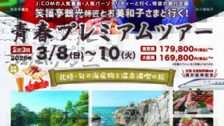 J:COMの人気番組・人気パーソナリティと行く、待望の旅行企画笑福亭鶴光師匠とお美和子さまと行く!青春プレミアムツアー2026.3.8(日)~2026.3.10(火)旅行代金:179,800円(税込)※東京発 笑福亭鶴光 … 続きを読む 笑福亭鶴光師匠とお美和子さまと行く!青春プレミアムツアー☆北陸2泊3日